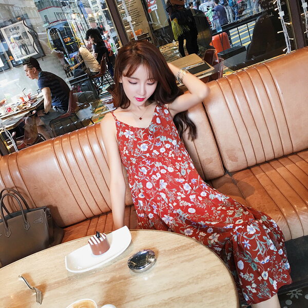 None, FINDSENSE G5 韓國時尚 夏季 紅色 無袖 V領 碎花 吊帶 連身裙。在樂天市場的FINDSENSE服飾有最棒的商品,是您省錢的最佳選擇。